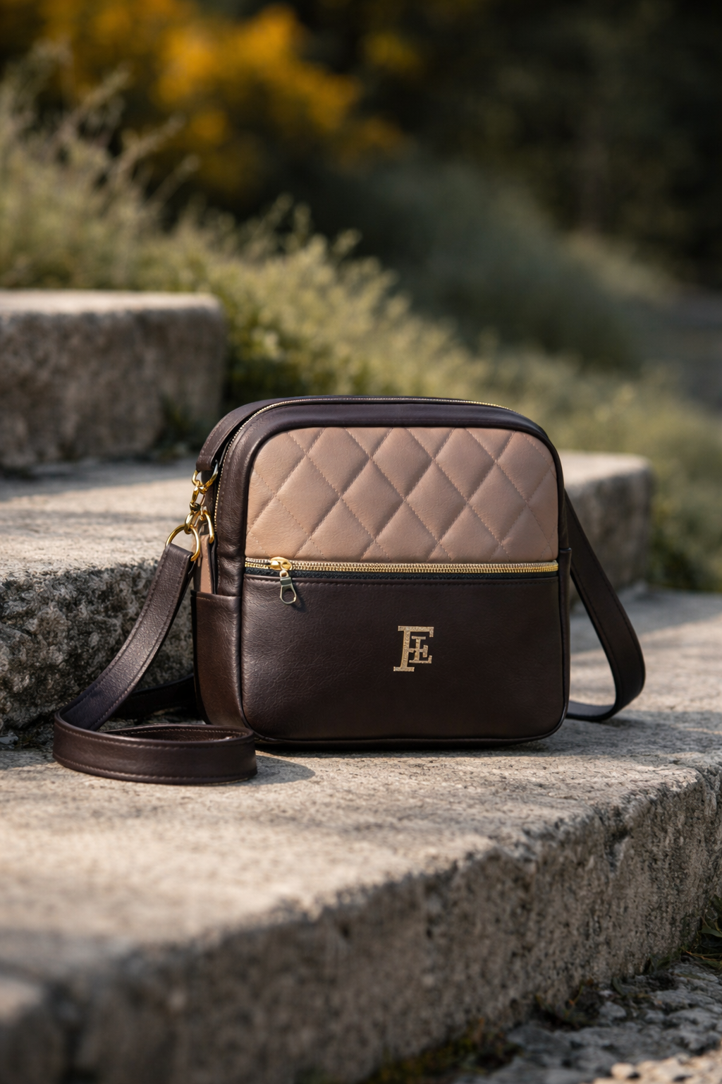 190€ Sac en cuir camel et chocolat Dimension : 35 x 25 x 13 Fermeture zip intérieur doublé poche intérieure zip Pochette assortie possible