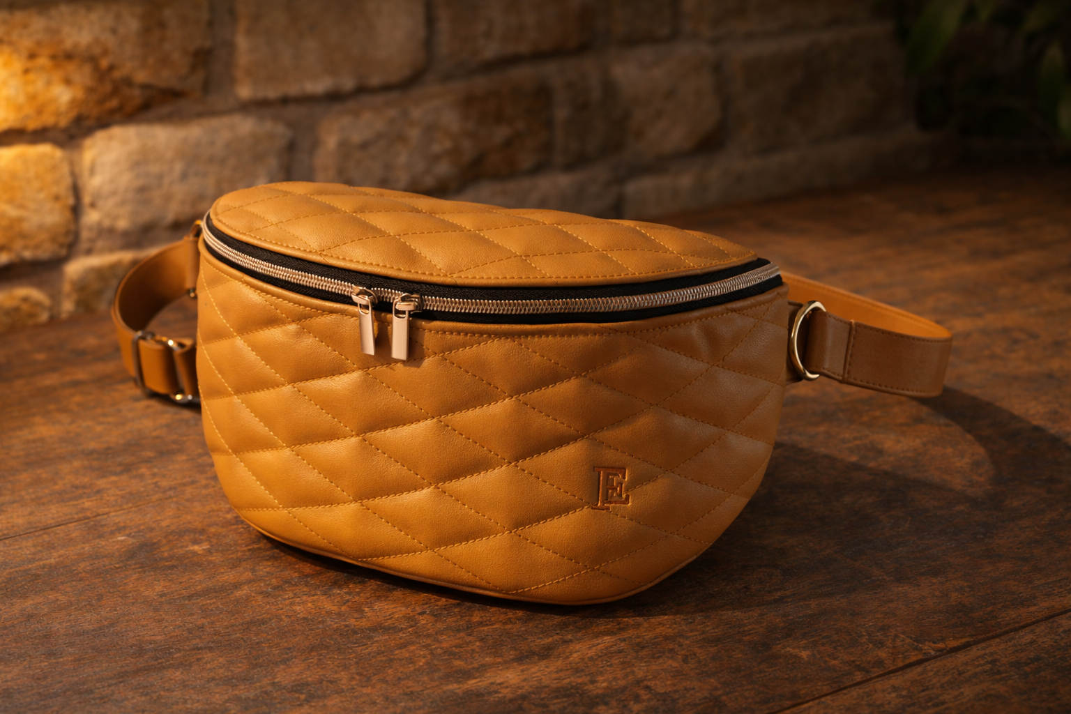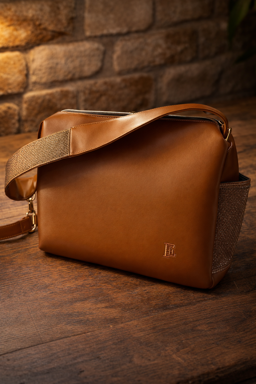 190€ Sac en cuir camel et brillant Dimension : 35 x 25 x 13 Fermeture zip intérieur doublé poche intérieure zip Pochette assortie possible