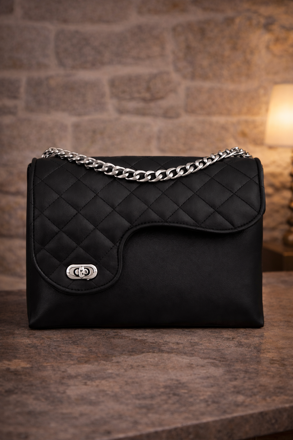 120 € Dimensions: 30x19x12 Matelassé Fermeture zip argent Intérieur doublé Poche intérieure zip Sangle amovible