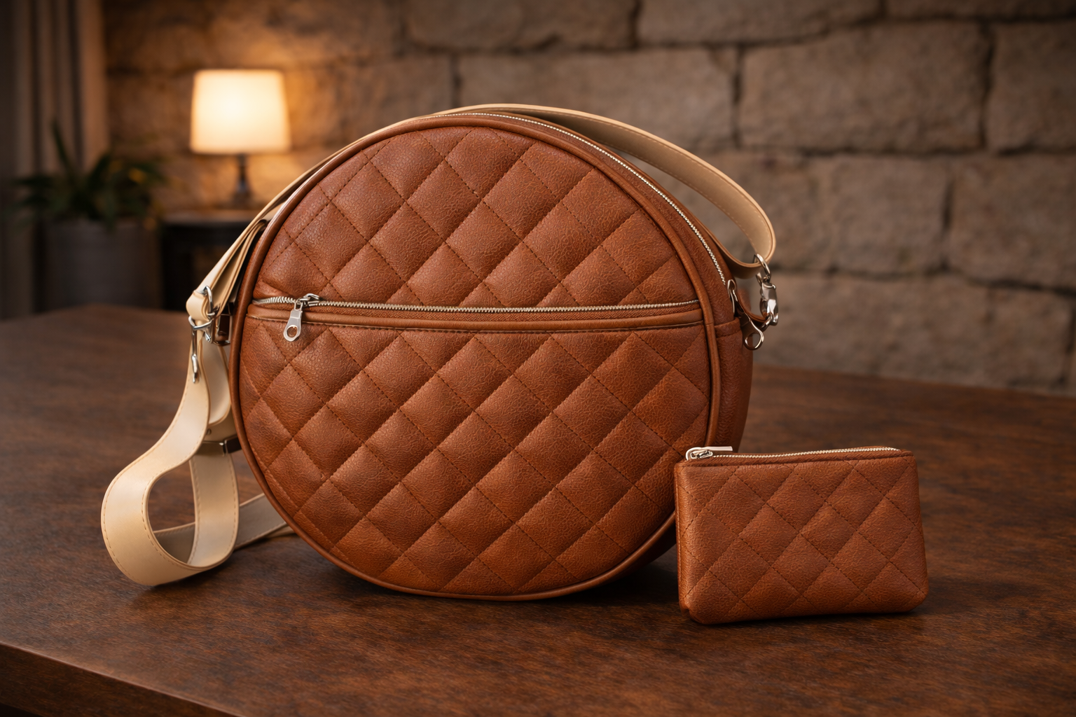 130€ Dimensions: Circonférence 20x 10 Fermeture zip argent Intérieur doublé Poche intérieure zip Pochette en option